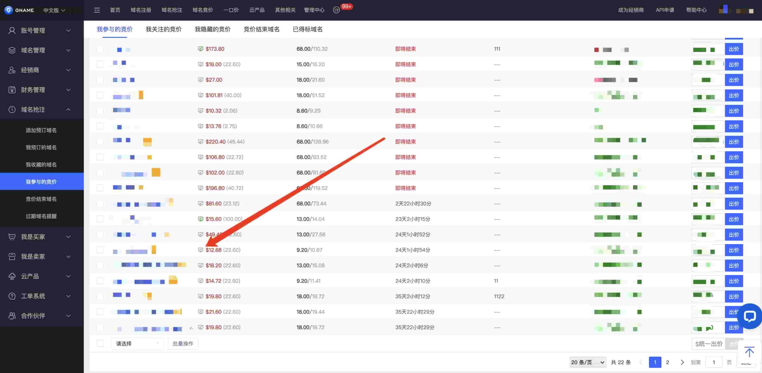 方式一:在Gname官网注册登录,在后台“我预订的域名”,点击"小电脑图标"设置离线竞价。