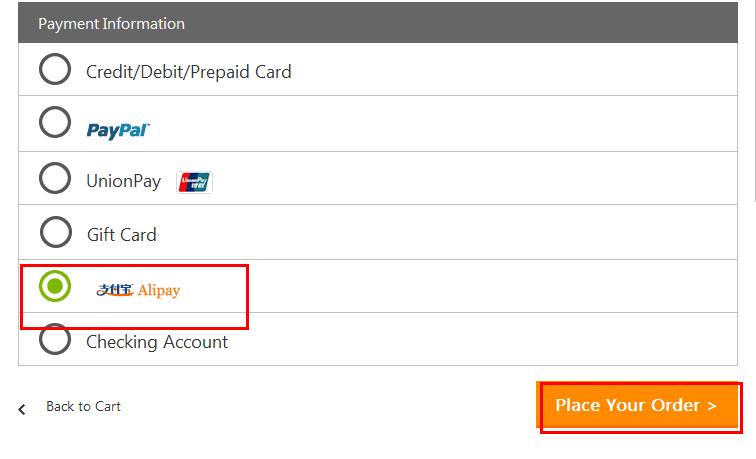 4.核对账单信息,选择付款方式,确认无误后点击“Place your order”进入付款界面,按照正常的付款步骤支付即可。